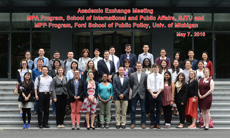 课后,双方代表在交大图书馆前合影留念,为此次访问交流画上了圆满的句号。密西根福特公共政策学院带队教师林安之教授(Ann Chih Lin)对交大国务学院的热情接待表示感谢,表示交流活动也为两院之间的进一步的合作奠定良好的基础。美国密歇根大学是美国历史上最悠久的大学之一,在世界范围内享有盛誉,在各学科领域中成就卓著并拥有巨大影响,被誉为“公立常春藤”。其福特公共政策学院更是美国公共政策与公共管理学科的先驱及领军者,专业排名位居美国前十,拥有世界一流的教授与顶尖的研究学者。