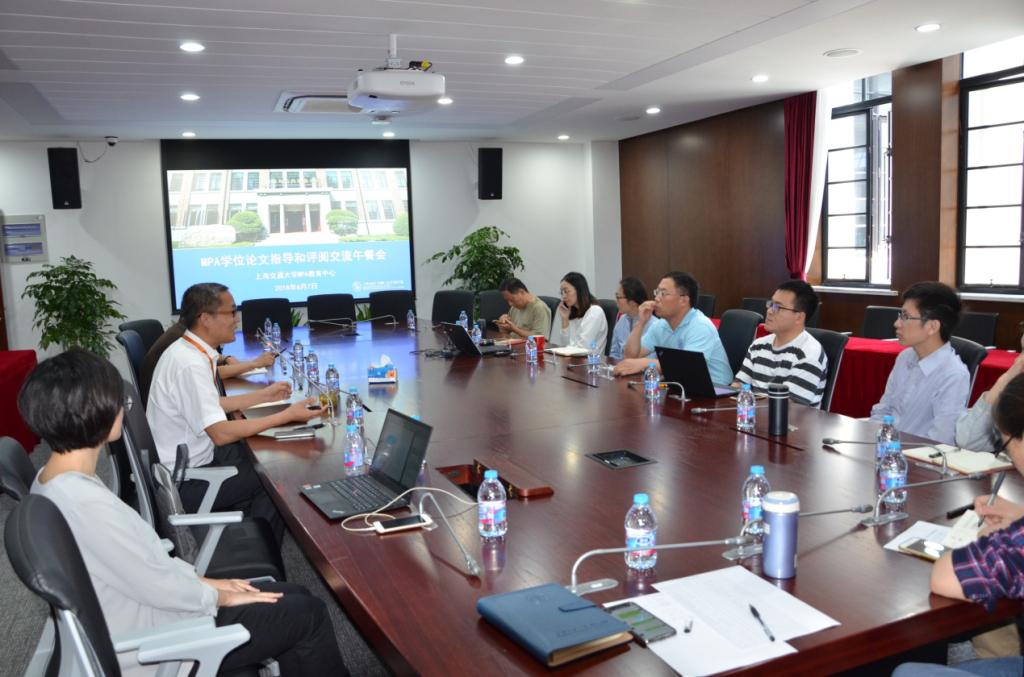 2018年6月7日, 上海交通大学MPA学位论文指导和评阅交流午餐会在徐汇校区新建楼239会议室顺利召开。吕晓俊、吴清、莫童、周建国、谢玮、王伟男、韩志明、张学昆、韩广华、翟一达、梁昕、杨帆、张攀、苏政等各位专业老师以及MPA办公室全体老师参加了会议。会议由日博网址副院长刘帮成教授主持。