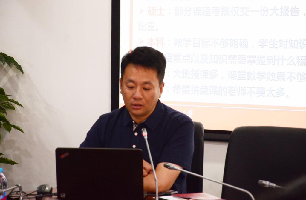 学院副院长樊博详细介绍了学院前期开展“教育思想大讨论”活动的情况,系统梳理了前期教育思想大讨论活动中学生们围绕课程设置、课程教学、导师制度等方面提出的意见和建议,分析了学校层面提出的问题及讨论的重点,部署了学院层面教师讨论的三大方面十二个细项的议题。