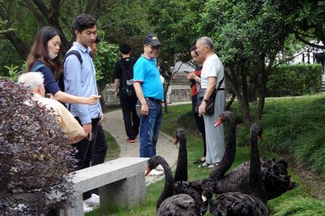 在学生讲解员的带领下,老党员们与同学们共同回顾了上海交通大学储才兴邦的办学历史。在硕果累累的校友墙前,老党员们久久驻足,追忆为祖国而奋斗的无悔青春。而最新的学术科研成果,如白血病治愈领域的新突破、新型材料助力“玉兔”登月等,令同学们对个人理想事业与国家民族命运的联系进行了更为深入的思考。同时,植物园优美的自然环境也让老党员们感受到了大学校园的活力与生机。