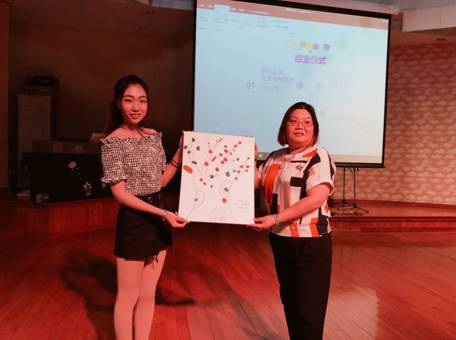结业仪式中,学院青志队队长于元婷将见证了双方深厚情谊的“指印画”其中一份赠与周红,并和周老师分别进行了致辞总结,共同为学员和志愿者们颁发了结业证书。