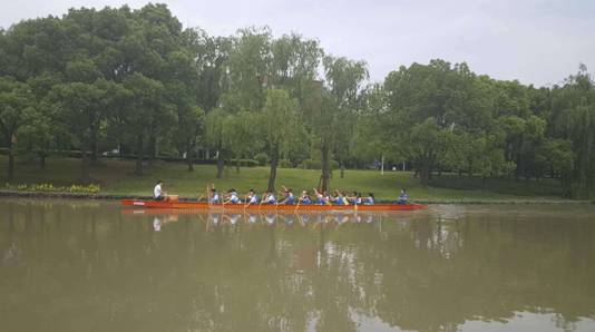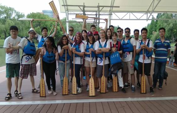 6月2日,在端午节来临之际,国务学院留学生会组织开展了划龙舟活动,学院近20名国际留学生和中国学生在闵行校区的淡水河赛艇码头集合训练,齐齐感受中国传统文化。国务学院学工办辅导员谢培文参加活动。