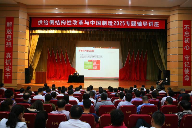 6月28日上午,专题讲座在普兰店区举行。讲座围绕“发展的转型”“供给侧改革”和“中国制造2025”三个方面,对中国经济的新常态、新战略和新走向进行了深入细致的解读,分析了中国进行供给侧结构性改革的原因、背景和内容,考察了供给侧结构性改革与中国制造2025之间的关系,解读了中国制造2025的内容、目标和路径,使与会同志增强了振兴东北老工业基地和建设大连“两先区”的决心。200余名党政干部参加了讲座。