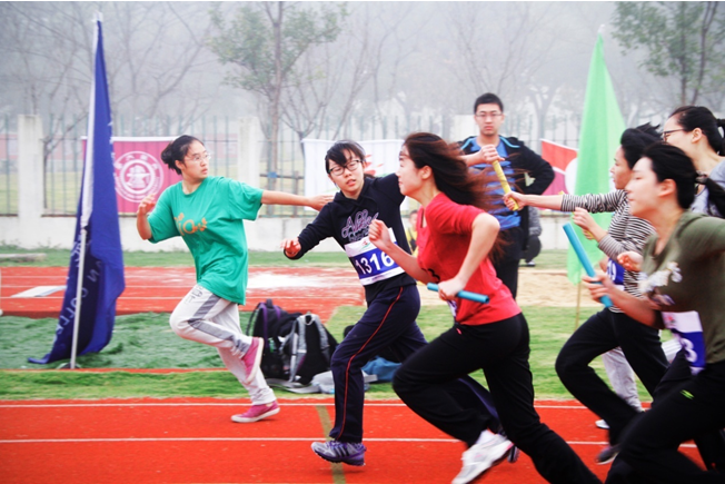 接下来的两天赛事中,国院师生们不畏强手,奋勇争先,取得了优异成绩。工会主席郭俊华带领学院女教师参加投篮比赛,并获得了第五名的好成绩。工会文体委员张录法带队的国院男子足球队和篮球队分别参加射门比赛和投篮比赛,成绩优异。2011级本科生张晓帆仅用4分28秒就跑完了1500米,是当之无愧的冠军!学生组男子投篮获得第7名、女子80m*10人接力赛获得第8名、女子组4人*100m接力赛获得第六名。其他参加的赛事,如跳高、跳长绳、毛毛虫接力赛等,国院学生虽未取得名次,但也是拼尽全力、顽强拼搏!