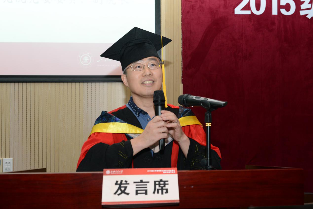 吕晓俊和魏陆作为导师代表分别做了发言。两位导师回顾了与同学们一起度过的紧张忙碌却又趣味横生的学习岁月,同时也向各位同学的未来发展表达了共同的殷切期许——做人要有仁爱之心;做事要不唯书、不唯上,要唯实,并且送上诚挚的祝福。