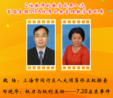 魏陆和郑晓华两位老师的教学案例入选首届全国MPA优秀公共管理教学案例库。