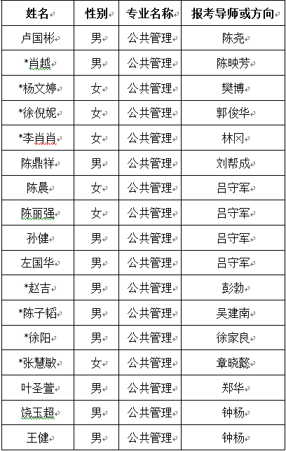 四、进入复试名单:(注:表格中姓名带“*”的申请者已通过了暑期学校复试)