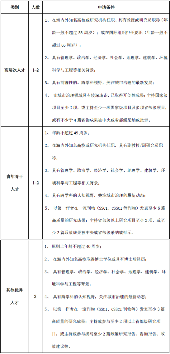 根据研究院工作需要,拟招聘人员的研究方向为:城市治理理论、城市社会治理、城市应急管理、城市环境污染治理、城市交通治理等。