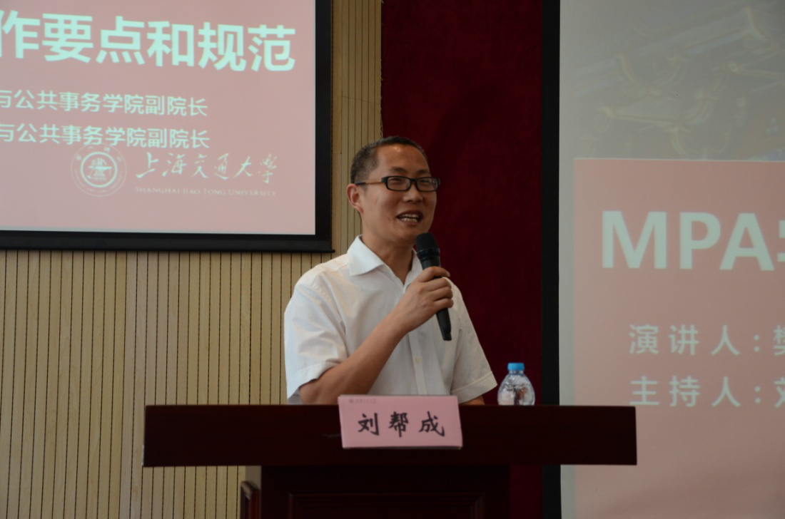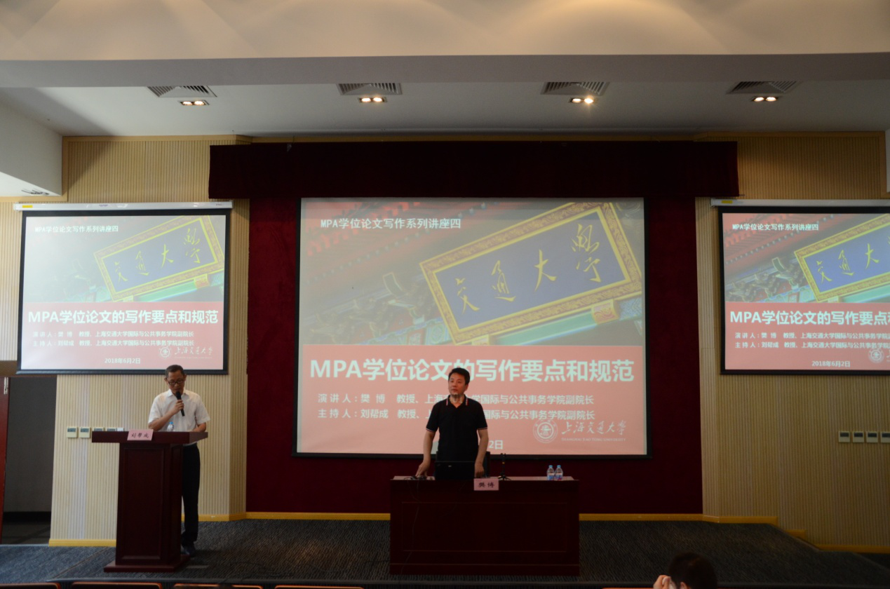 6月2日,上海交通大学MPA学位论文写作系列讲座第四讲在徐汇校区新上院N100举行。本次讲座邀请了日博网址副院长樊博教授作《MPA学位论文的写作要点和规范》讲座。日博网址副院长刘帮成教授主持了讲座。