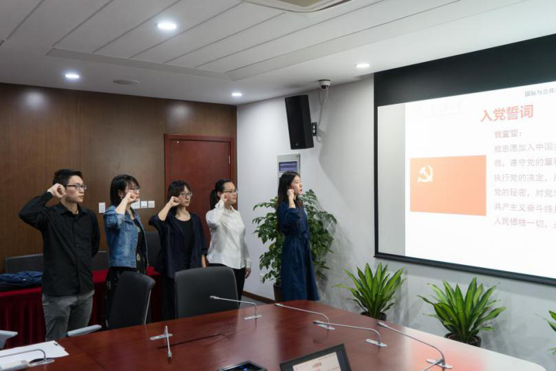 随后,支部委员和入党介绍人分别介绍了对预备党员的培养考察情况。巫泽人代表支委会向大会简要介绍了党员发展的流程,提请大会进行发展和转正的决议。入党介绍人分别从学习、思想、生活等情况对介绍对象进行了介绍,充分肯定他们的表现,认为符合入党条件。几位与会党员代表也就四位同学的表现进行了高度评价,蒋光明认为四位同学政治立场坚定,也有着加入中国共产党、为党的事业和实现中国梦的奉献自我赤诚之心,还与同学、老师友好相处,学习认真,规划明确,积极追求个人发展。希望更进一步,继续保持良好的表现。经会议讨论与无记名投票,会议一致通过了谢逸东的转正申请以及杨铭奕等三位积极分子的入党申请,并在宣传委员段思含的带领下庄严宣誓。