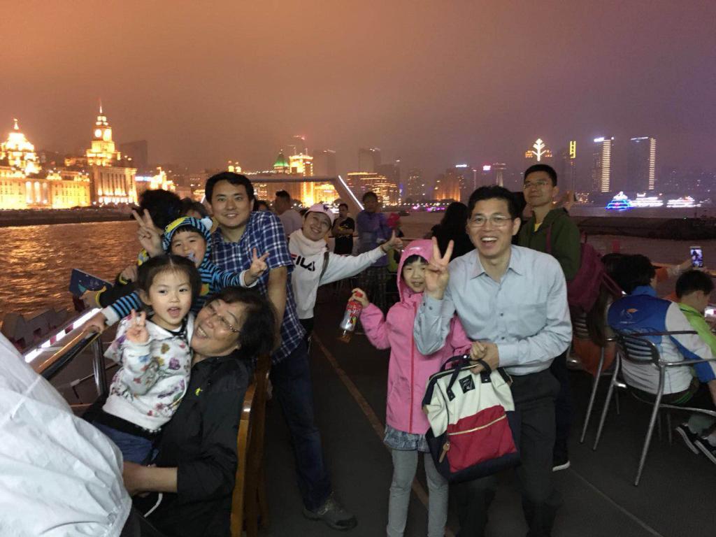 也许是我们的诚心感动了上天,连日不断的雨水天气在活动举行的当天中午不可思议地停止了!傍晚时分的黄浦江边凉风习习,令人心旷神怡。19点30分,一艘“强生号”小型游轮缓缓地驶出了新十六浦码头。此时此刻,船上响起了一阵又一阵的孩子们的欢叫声。浦江游览亲子活动正式开始了!